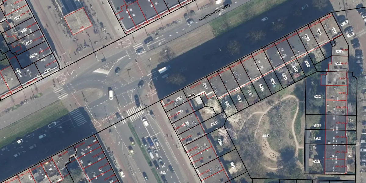 Stadhoudersweg 122-B is gelegen op kadastraal perceel RTD10Z3405. Deze kadastrale aanduiding is uniek en wordt gebruikt door het Kadaster om eigendomsrechten en andere zakelijke rechten vast te leggen. Het perceel maakt onderdeel uit van de kadastrale gemeente Rotterdam.