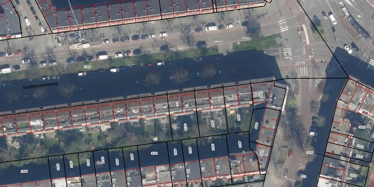 Stadhoudersweg 16-C is gelegen op kadastraal perceel RTD10Z3475. Deze kadastrale aanduiding is uniek en wordt gebruikt door het Kadaster om eigendomsrechten en andere zakelijke rechten vast te leggen. Het perceel maakt onderdeel uit van de kadastrale gemeente Rotterdam.