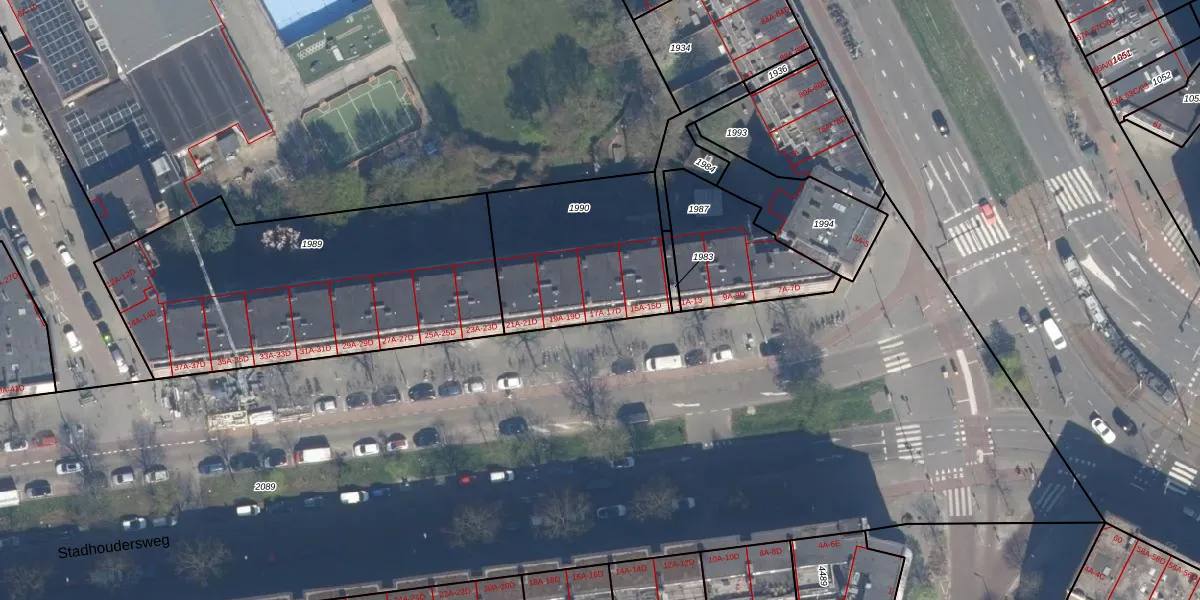 Stadhoudersweg 17-C is gelegen op kadastraal perceel RTD10AB1990. Deze kadastrale aanduiding is uniek en wordt gebruikt door het Kadaster om eigendomsrechten en andere zakelijke rechten vast te leggen. Het perceel maakt onderdeel uit van de kadastrale gemeente Rotterdam.