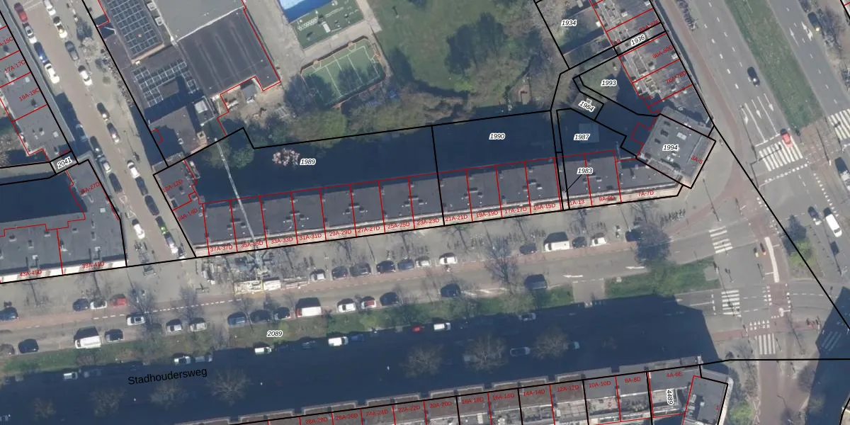 Stadhoudersweg 23-B is gelegen op kadastraal perceel RTD10AB1989. Deze kadastrale aanduiding is uniek en wordt gebruikt door het Kadaster om eigendomsrechten en andere zakelijke rechten vast te leggen. Het perceel maakt onderdeel uit van de kadastrale gemeente Rotterdam.
