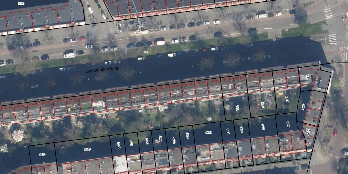 Stadhoudersweg 26-A is gelegen op kadastraal perceel RTD10Z3474. Deze kadastrale aanduiding is uniek en wordt gebruikt door het Kadaster om eigendomsrechten en andere zakelijke rechten vast te leggen. Het perceel maakt onderdeel uit van de kadastrale gemeente Rotterdam.