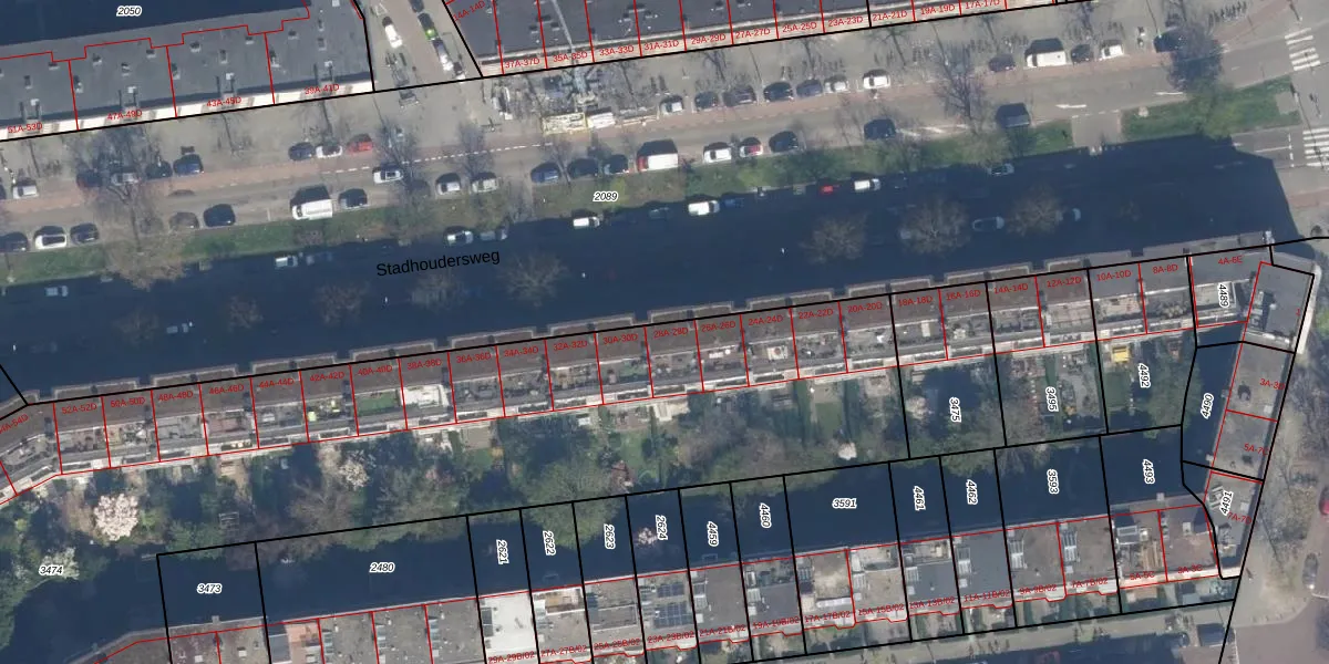 Stadhoudersweg 28-A is gelegen op kadastraal perceel RTD10Z3474. Deze kadastrale aanduiding is uniek en wordt gebruikt door het Kadaster om eigendomsrechten en andere zakelijke rechten vast te leggen. Het perceel maakt onderdeel uit van de kadastrale gemeente Rotterdam.