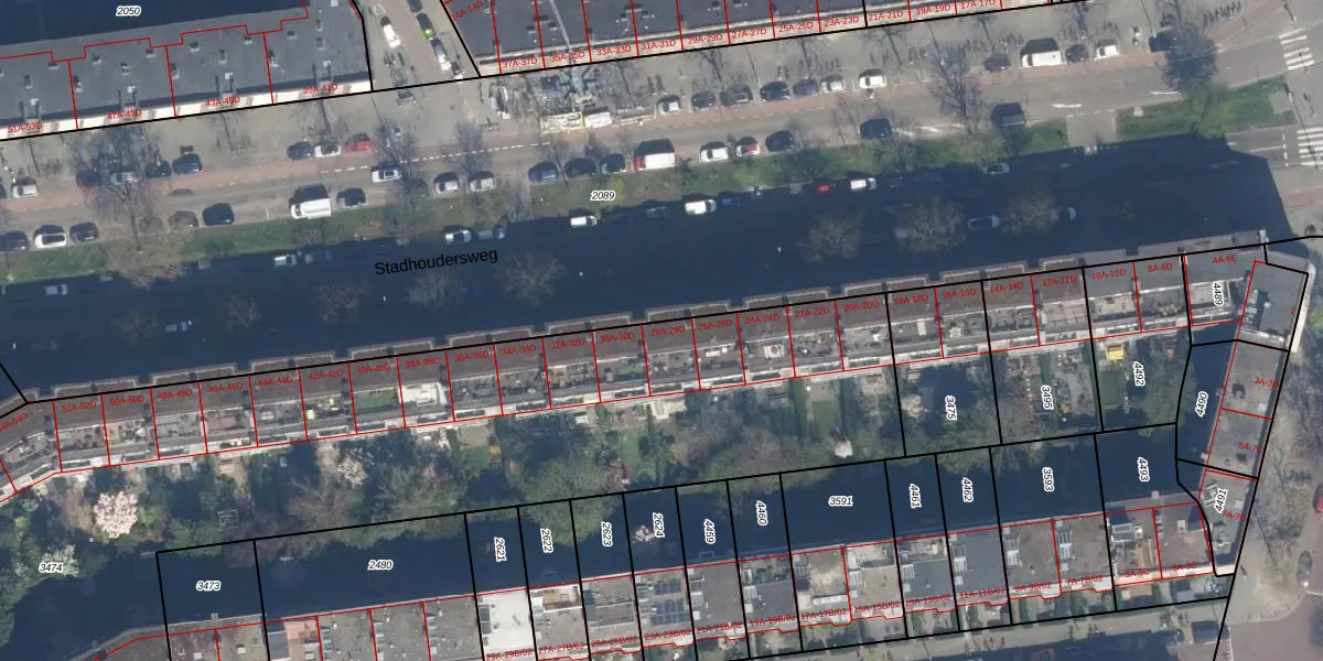 Stadhoudersweg 28-D is gelegen op kadastraal perceel RTD10Z3474. Deze kadastrale aanduiding is uniek en wordt gebruikt door het Kadaster om eigendomsrechten en andere zakelijke rechten vast te leggen. Het perceel maakt onderdeel uit van de kadastrale gemeente Rotterdam.