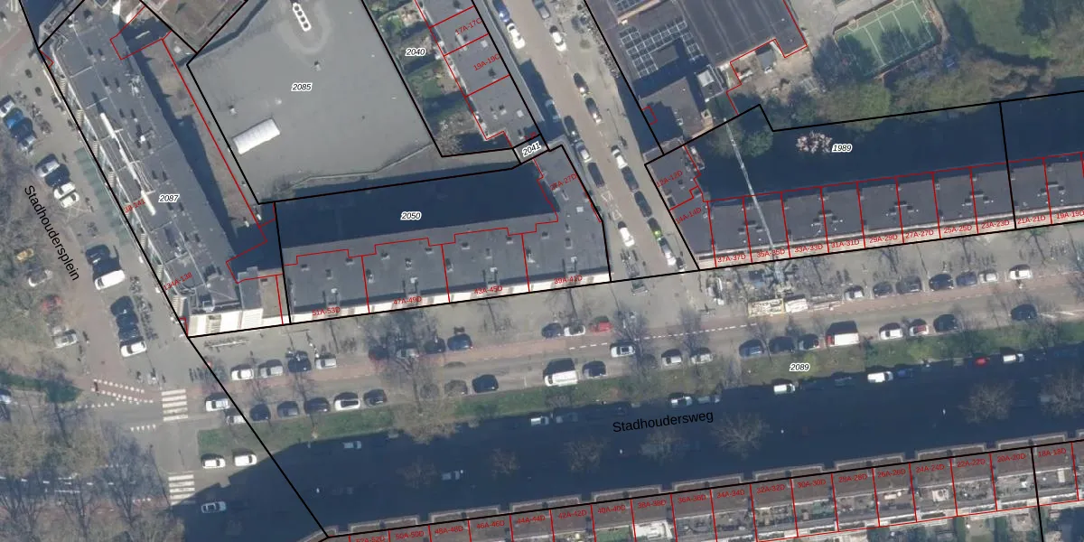 Stadhoudersweg 41-C is gelegen op kadastraal perceel RTD10AB2050. Deze kadastrale aanduiding is uniek en wordt gebruikt door het Kadaster om eigendomsrechten en andere zakelijke rechten vast te leggen. Het perceel maakt onderdeel uit van de kadastrale gemeente Rotterdam.