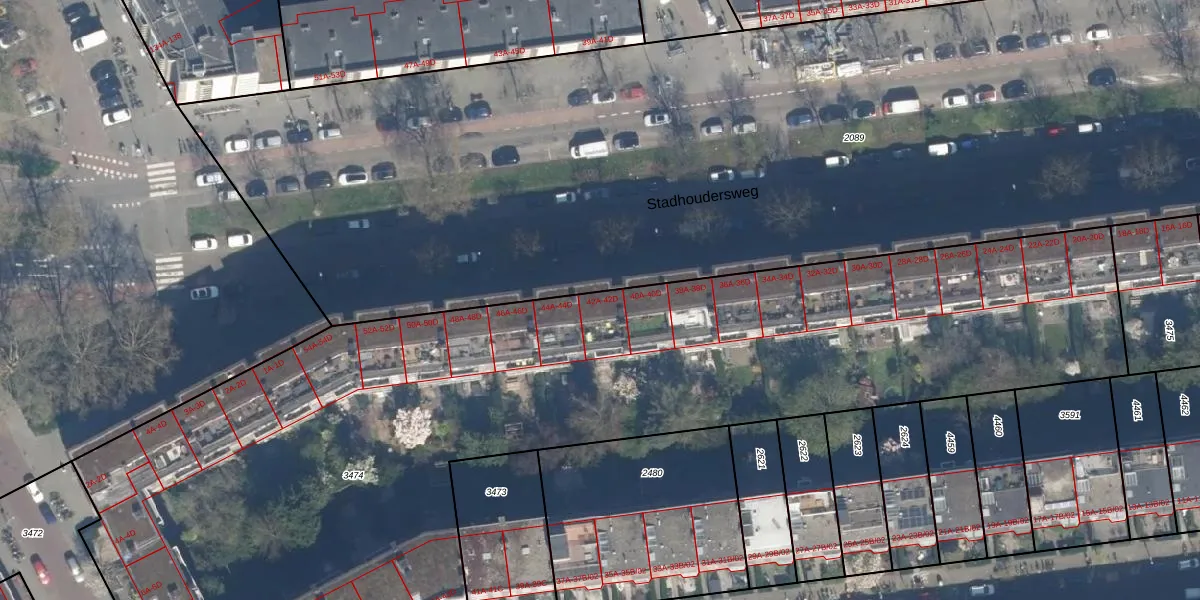 Stadhoudersweg 42-B is gelegen op kadastraal perceel RTD10Z3474. Deze kadastrale aanduiding is uniek en wordt gebruikt door het Kadaster om eigendomsrechten en andere zakelijke rechten vast te leggen. Het perceel maakt onderdeel uit van de kadastrale gemeente Rotterdam.