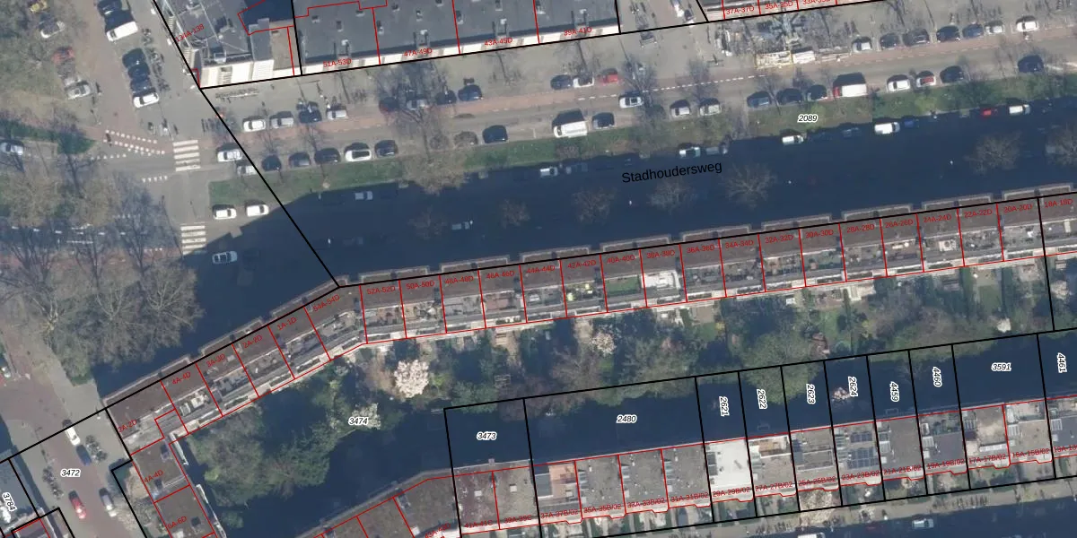 Stadhoudersweg 44-B is gelegen op kadastraal perceel RTD10Z3474. Deze kadastrale aanduiding is uniek en wordt gebruikt door het Kadaster om eigendomsrechten en andere zakelijke rechten vast te leggen. Het perceel maakt onderdeel uit van de kadastrale gemeente Rotterdam.