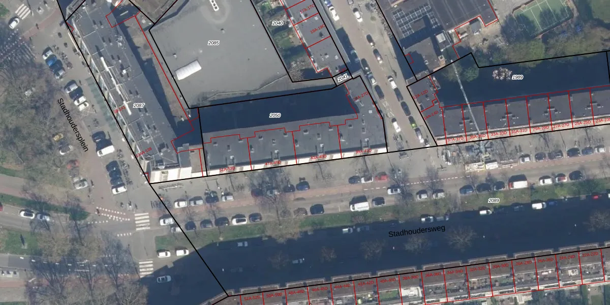 Stadhoudersweg 45-D is gelegen op kadastraal perceel RTD10AB2050. Deze kadastrale aanduiding is uniek en wordt gebruikt door het Kadaster om eigendomsrechten en andere zakelijke rechten vast te leggen. Het perceel maakt onderdeel uit van de kadastrale gemeente Rotterdam.