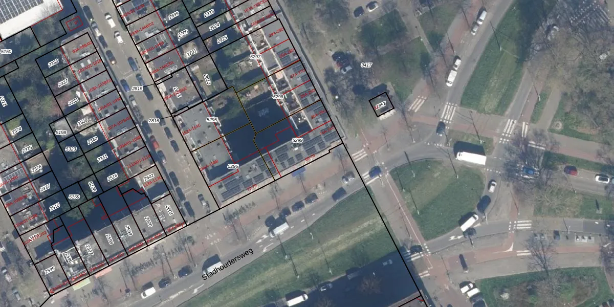 Stadhoudersweg 71-A is gelegen op kadastraal perceel RTD10Z5299. Deze kadastrale aanduiding is uniek en wordt gebruikt door het Kadaster om eigendomsrechten en andere zakelijke rechten vast te leggen. Het perceel maakt onderdeel uit van de kadastrale gemeente Rotterdam.