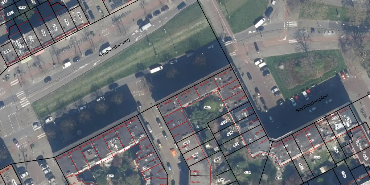 Stadhoudersweg 76-E is gelegen op kadastraal perceel RTD10Z3459. Deze kadastrale aanduiding is uniek en wordt gebruikt door het Kadaster om eigendomsrechten en andere zakelijke rechten vast te leggen. Het perceel maakt onderdeel uit van de kadastrale gemeente Rotterdam.