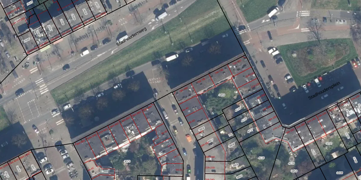 Stadhoudersweg 78-D is gelegen op kadastraal perceel RTD10Z3459. Deze kadastrale aanduiding is uniek en wordt gebruikt door het Kadaster om eigendomsrechten en andere zakelijke rechten vast te leggen. Het perceel maakt onderdeel uit van de kadastrale gemeente Rotterdam.