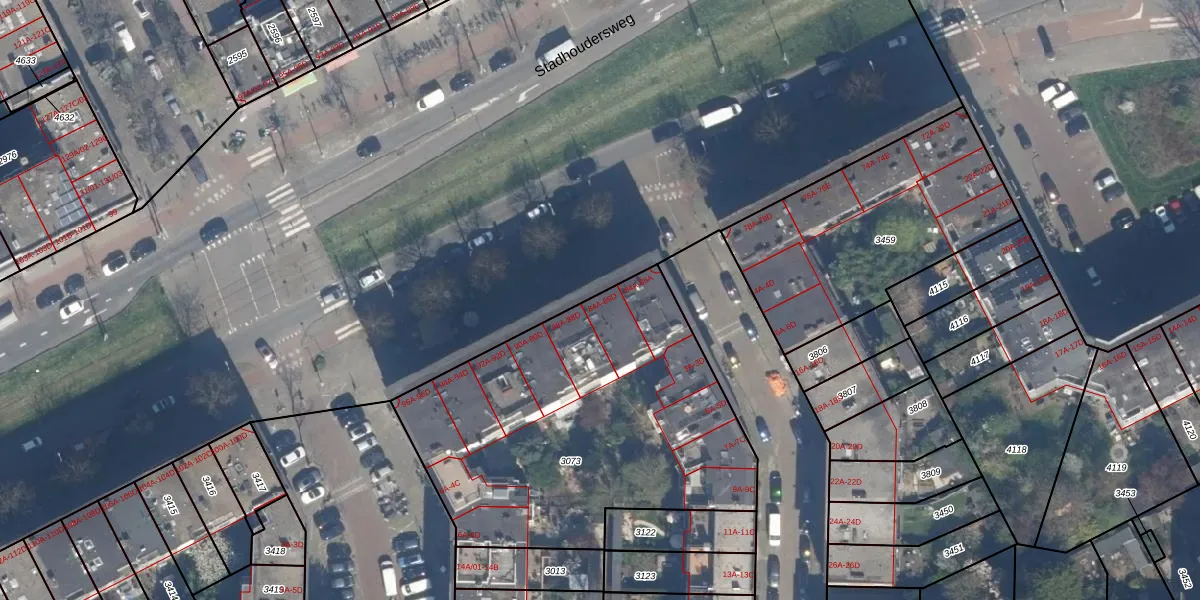 Stadhoudersweg 86-C is gelegen op kadastraal perceel RTD10Z3073. Deze kadastrale aanduiding is uniek en wordt gebruikt door het Kadaster om eigendomsrechten en andere zakelijke rechten vast te leggen. Het perceel maakt onderdeel uit van de kadastrale gemeente Rotterdam.
