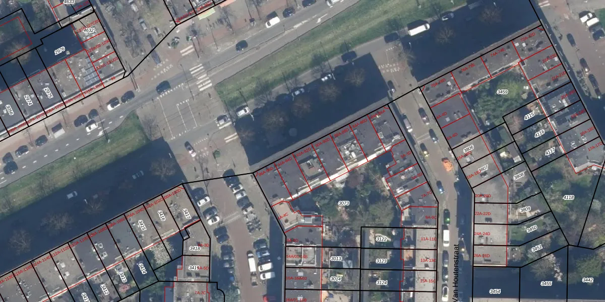 Het perceel waarop het adres ligt is RTD10-Z-3073. De afkorting 'RTD10' staat voor kadastrale gemeente Rotterdam. De gemiddelde perceeloppervlakte in de kadastrale gemeente Rotterdam is 1601,97 m². Dit perceel is met zijn 1810 m² dus groter dan gemiddeld. De grootste perceeloppervlakte in de kadastrale gemeente is 30,3 ha. De kleinste oppervlakte bedraagt 0 m². Op het perceel zijn 49 adressen aanwezig. De huidige grenzen van het perceel zijn digitaal in de Basisregistratie Kadaster (BRK) geregistreerd op 23-07-2003.