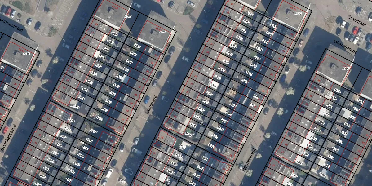 Het perceel waarop Starstraat 25 staat heeft een oppervlakte van 106 m². Dit is een middelgroot perceel. De perceeloppervlakte wordt geregistreerd door het Kadaster. Gedetailleerde informatie over de maten van dit perceel kunt u vinden in het rapport Kadastrale kaart met maatvoering van Starstraat 25.