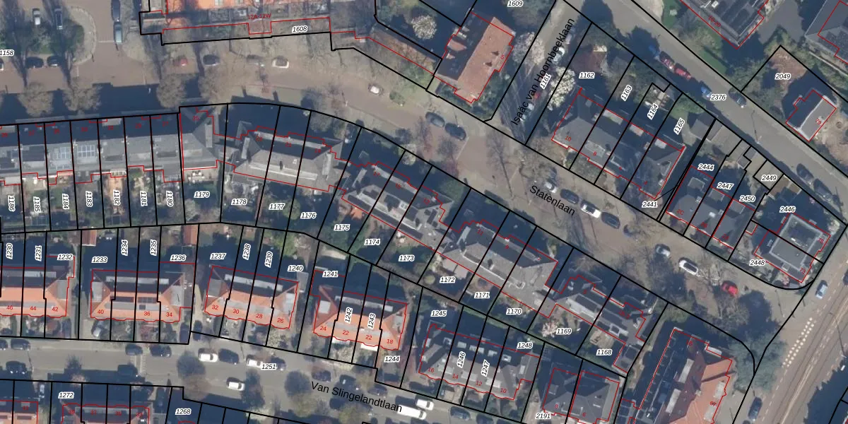 Het perceel waarop Statenlaan 13 staat heeft een oppervlakte van 274 m². Dit is een middelgroot perceel. De perceeloppervlakte wordt geregistreerd door het Kadaster. Gedetailleerde informatie over de maten van dit perceel kunt u vinden in het rapport Kadastrale kaart met maatvoering van Statenlaan 13.