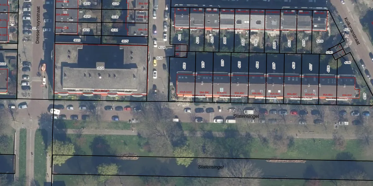 Statensingel 101-B is gelegen op kadastraal perceel RTD10Z4130. Deze kadastrale aanduiding is uniek en wordt gebruikt door het Kadaster om eigendomsrechten en andere zakelijke rechten vast te leggen. Het perceel maakt onderdeel uit van de kadastrale gemeente Rotterdam.