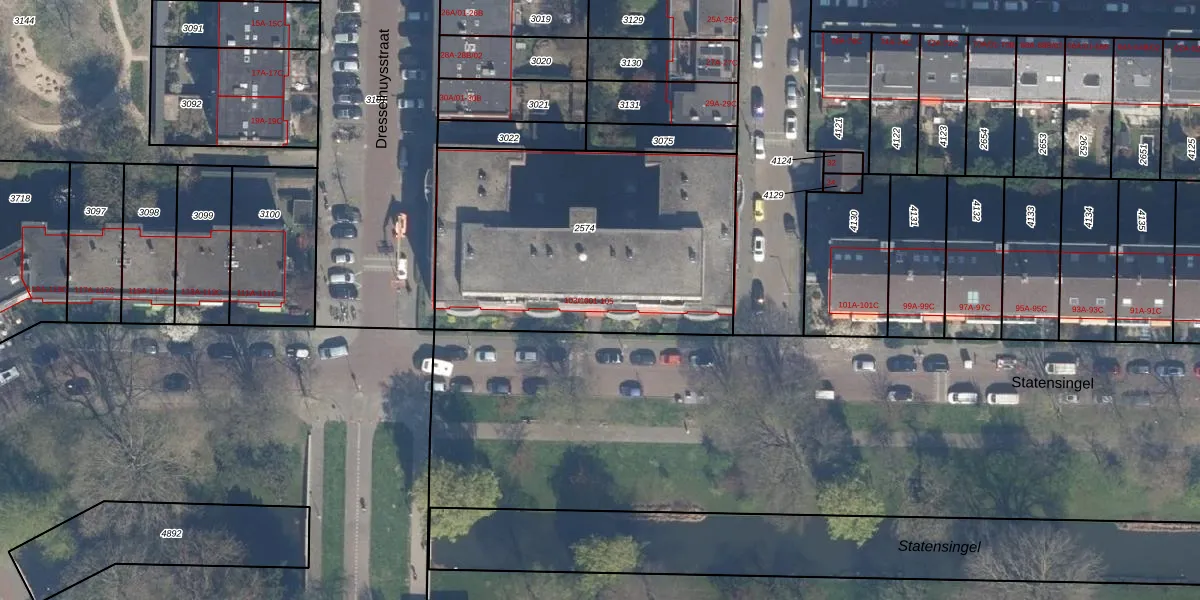 Het perceel waarop Statensingel 103-2001 staat heeft een oppervlakte van 1500 m². Dit is een zeer groot perceel. De perceeloppervlakte wordt geregistreerd door het Kadaster. Gedetailleerde informatie over de maten van dit perceel kunt u vinden in het rapport Kadastrale kaart met maatvoering van Statensingel 103-2001.