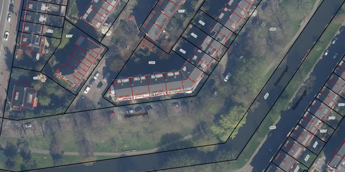 Statensingel 187-B is gelegen op kadastraal perceel RTD10Z3082. Deze kadastrale aanduiding is uniek en wordt gebruikt door het Kadaster om eigendomsrechten en andere zakelijke rechten vast te leggen. Het perceel maakt onderdeel uit van de kadastrale gemeente Rotterdam.