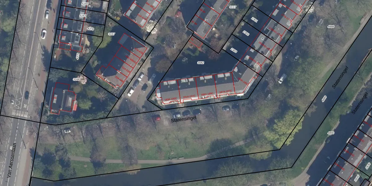 Het perceel waarop Statensingel 191-A staat heeft een oppervlakte van 1401 m². Dit is een zeer groot perceel. De perceeloppervlakte wordt geregistreerd door het Kadaster. Gedetailleerde informatie over de maten van dit perceel kunt u vinden in het rapport Kadastrale kaart met maatvoering van Statensingel 191-A.
