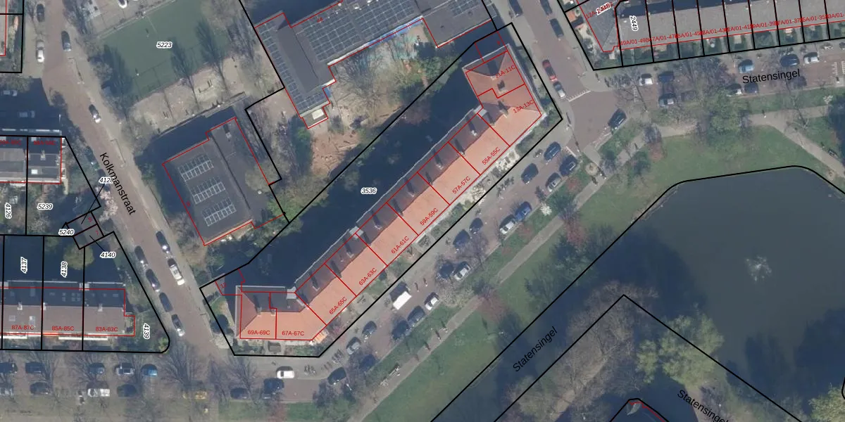 Statensingel 59-A is gelegen op kadastraal perceel RTD10Z3536. Deze kadastrale aanduiding is uniek en wordt gebruikt door het Kadaster om eigendomsrechten en andere zakelijke rechten vast te leggen. Het perceel maakt onderdeel uit van de kadastrale gemeente Rotterdam.