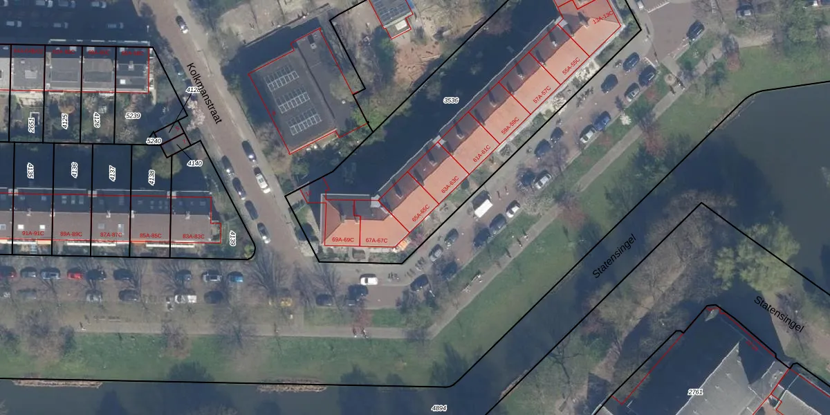 Het perceel waarop Statensingel 65-B staat heeft een oppervlakte van 2600 m². Dit is een zeer groot perceel. De perceeloppervlakte wordt geregistreerd door het Kadaster. Gedetailleerde informatie over de maten van dit perceel kunt u vinden in het rapport Kadastrale kaart met maatvoering van Statensingel 65-B.