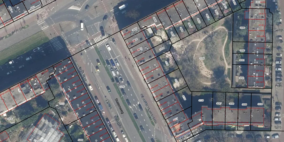Statenweg 120-C is gelegen op kadastraal perceel RTD10Z3714. Deze kadastrale aanduiding is uniek en wordt gebruikt door het Kadaster om eigendomsrechten en andere zakelijke rechten vast te leggen. Het perceel maakt onderdeel uit van de kadastrale gemeente Rotterdam.