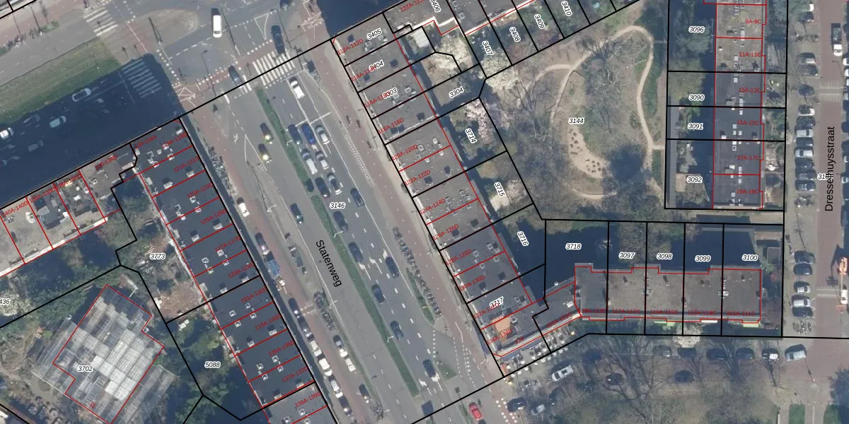 Statenweg 124-A is gelegen op kadastraal perceel RTD10Z3715. Deze kadastrale aanduiding is uniek en wordt gebruikt door het Kadaster om eigendomsrechten en andere zakelijke rechten vast te leggen. Het perceel maakt onderdeel uit van de kadastrale gemeente Rotterdam.