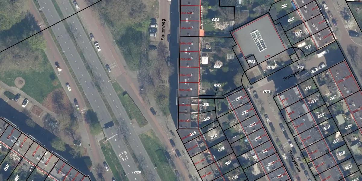 Statenweg 154-B is gelegen op kadastraal perceel RTD10Z3435. Deze kadastrale aanduiding is uniek en wordt gebruikt door het Kadaster om eigendomsrechten en andere zakelijke rechten vast te leggen. Het perceel maakt onderdeel uit van de kadastrale gemeente Rotterdam.
