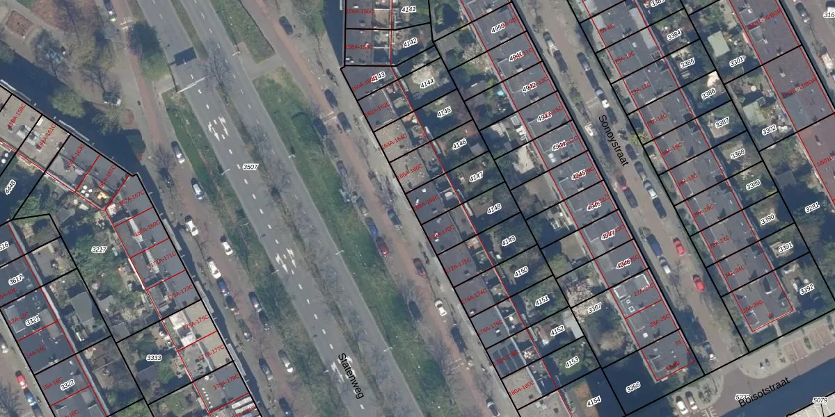 Statenweg 168-A is gelegen op kadastraal perceel RTD10Z4147. Deze kadastrale aanduiding is uniek en wordt gebruikt door het Kadaster om eigendomsrechten en andere zakelijke rechten vast te leggen. Het perceel maakt onderdeel uit van de kadastrale gemeente Rotterdam.