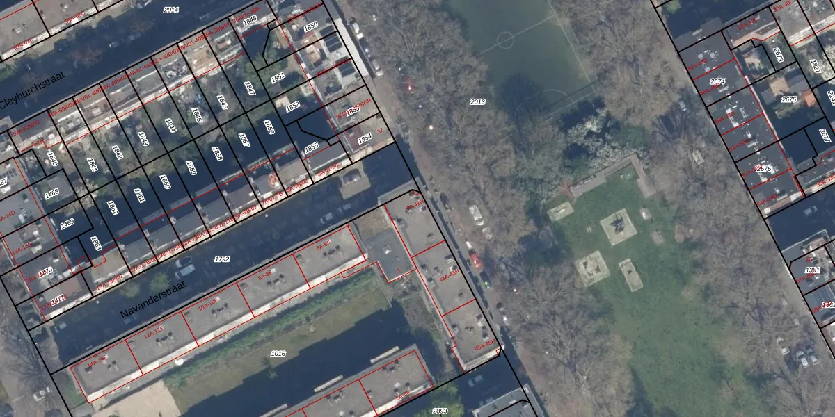 Het perceel waarop het adres ligt is RTD10-AB-1016. De afkorting 'RTD10' staat voor kadastrale gemeente Rotterdam. De oppervlakte van het perceel is 4455 m². Dat is groter dan gemiddeld in Rotterdam, waar de gemiddelde perceeloppervlakte op 1601,97 m² ligt. De grootste perceeloppervlakte in de kadastrale gemeente is 30,3 ha. De kleinste oppervlakte bedraagt 0 m². Op het perceel liggen in totaal 84 adressen. In de Basisregistratie Kadaster (BRK) werden de grenzen van het perceel geregistreerd op 23-07-2003.