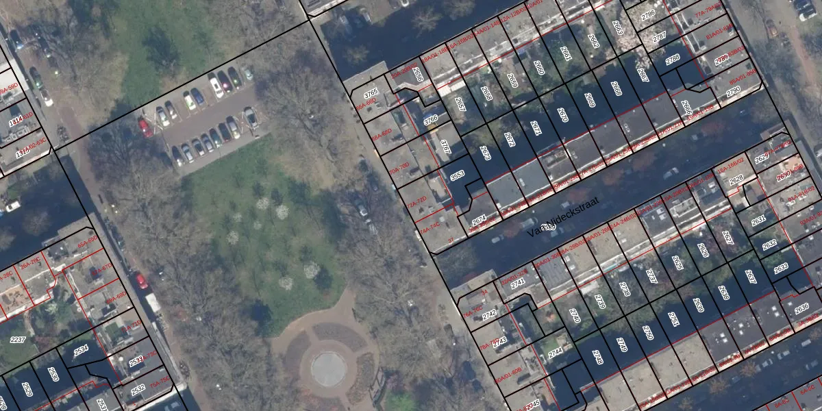 Het perceel waarop het adres ligt is RTD10-Z-3553. De afkorting 'RTD10' staat voor kadastrale gemeente Rotterdam. Het perceel is 267 m² groot. Dat is kleiner dan de gemiddelde perceeloppervlakte in Rotterdam, dat op 1602,8 m² ligt. Het kleinste perceel in de kadastrale gemeente is 0 m² groot. De grootste perceeloppervlakte is 30,3 ha. Er zijn 8 adressen aanwezig op het perceel. In de Basisregistratie Kadaster (BRK) werden de grenzen van het perceel geregistreerd op 18-11-2002.