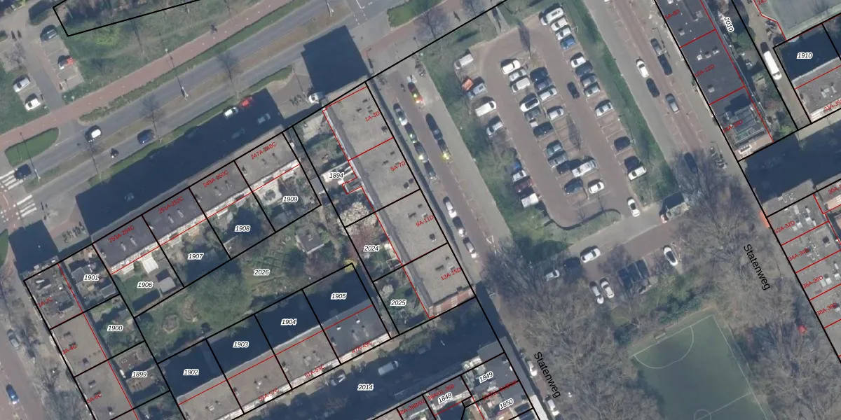 Statenweg 9-A is gelegen op kadastraal perceel RTD10AB2024. Deze kadastrale aanduiding is uniek en wordt gebruikt door het Kadaster om eigendomsrechten en andere zakelijke rechten vast te leggen. Het perceel maakt onderdeel uit van de kadastrale gemeente Rotterdam.