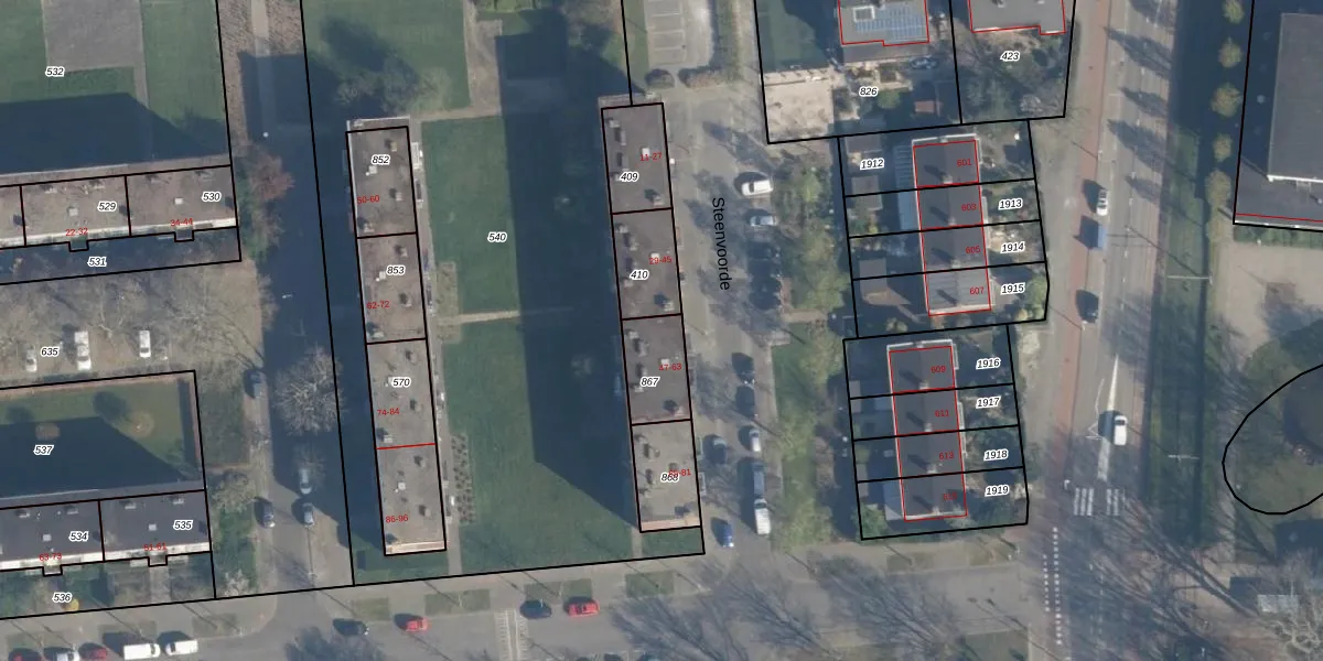 Steenvoorde 47 is gelegen op kadastraal perceel CLS00K867. Deze kadastrale aanduiding is uniek en wordt gebruikt door het Kadaster om eigendomsrechten en andere zakelijke rechten vast te leggen. Het perceel maakt onderdeel uit van de kadastrale gemeente Charlois.