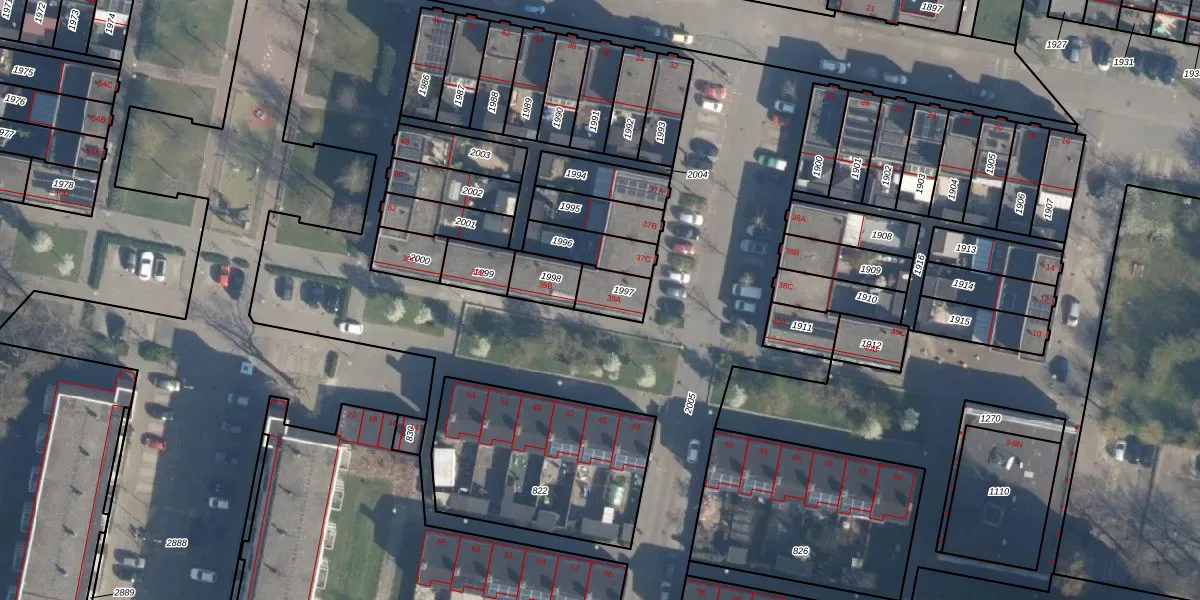 Gebruik de zoekbalk of klik op een perceel voor informatie over de adressen binnen dit perceel.