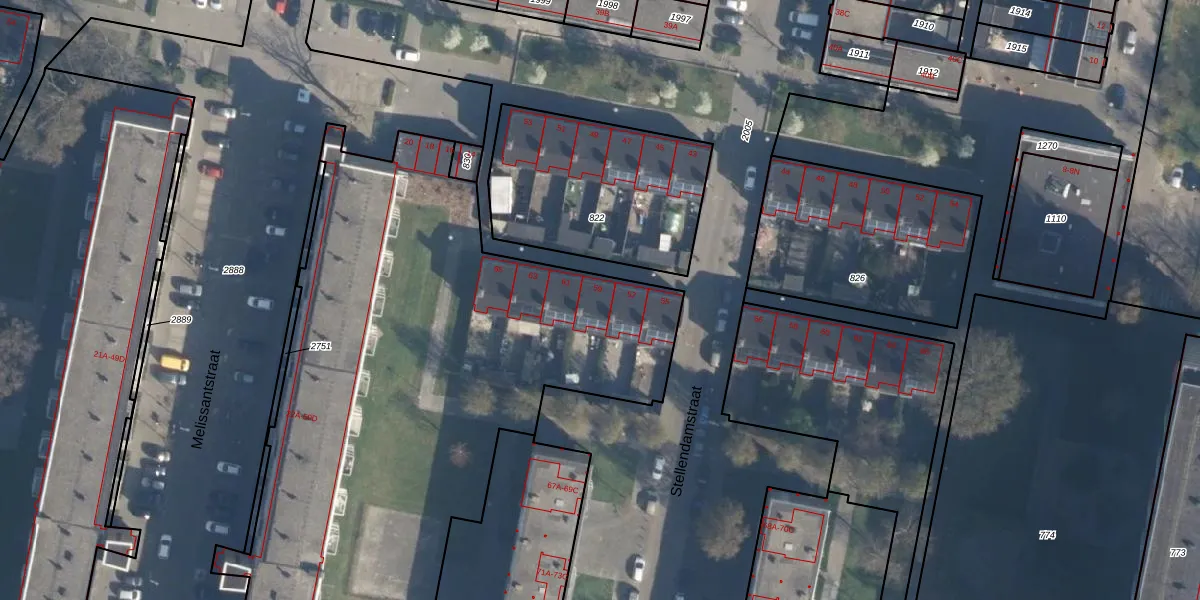 Het perceel waarop Stellendamstraat 59 staat heeft een oppervlakte van 5138 m². Dit is een zeer groot perceel. De perceeloppervlakte wordt geregistreerd door het Kadaster. Gedetailleerde informatie over de maten van dit perceel kunt u vinden in het rapport Kadastrale kaart met maatvoering van Stellendamstraat 59.