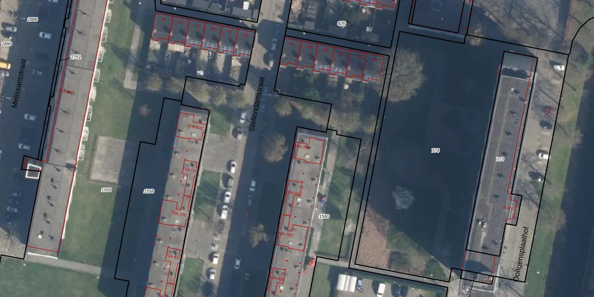 Stellendamstraat 70-A is gelegen op kadastraal perceel CLS00L1560. Deze kadastrale aanduiding is uniek en wordt gebruikt door het Kadaster om eigendomsrechten en andere zakelijke rechten vast te leggen. Het perceel maakt onderdeel uit van de kadastrale gemeente Charlois.