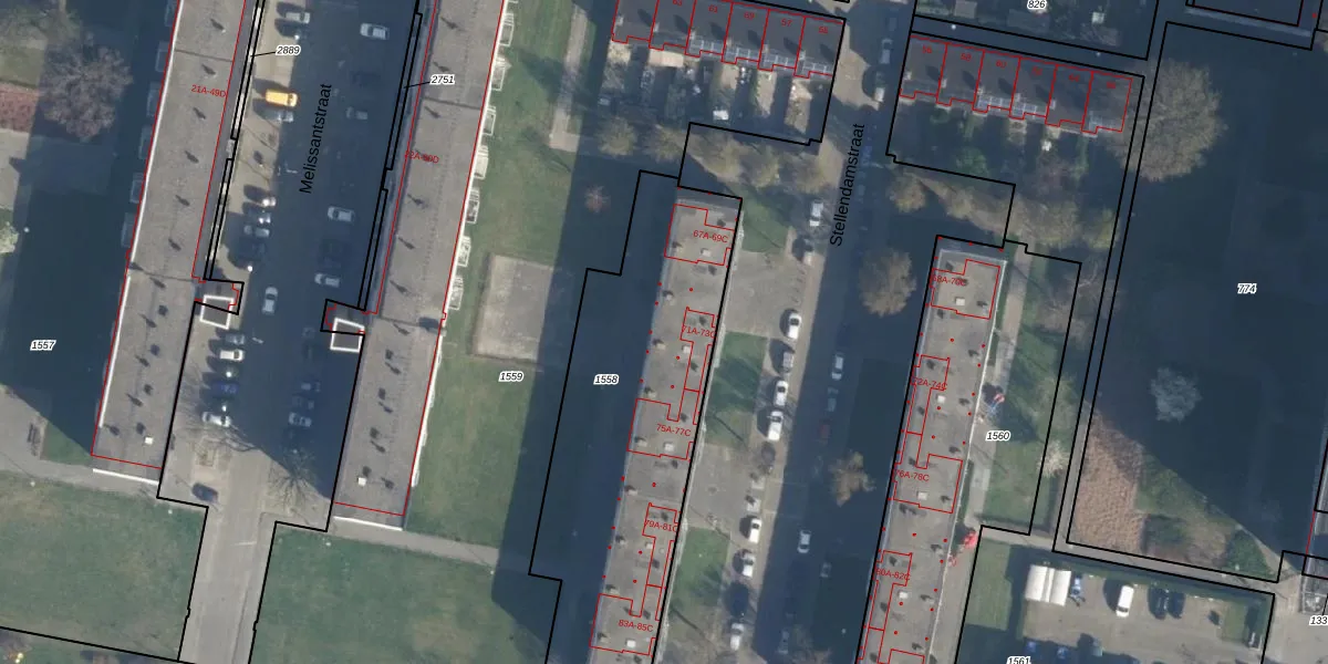 Stellendamstraat 73-B is gelegen op kadastraal perceel CLS00L1558. Deze kadastrale aanduiding is uniek en wordt gebruikt door het Kadaster om eigendomsrechten en andere zakelijke rechten vast te leggen. Het perceel maakt onderdeel uit van de kadastrale gemeente Charlois.