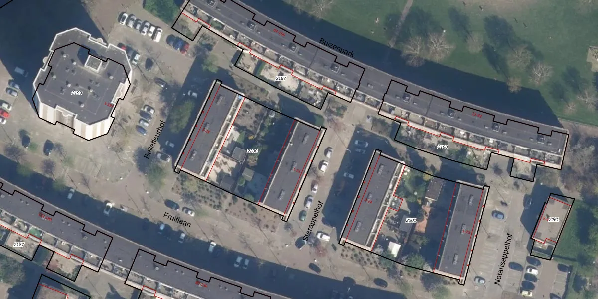 Het perceel waarop Sterappelhof 13 staat heeft een oppervlakte van 1281 m². Dit is een zeer groot perceel. De perceeloppervlakte wordt geregistreerd door het Kadaster. Gedetailleerde informatie over de maten van dit perceel kunt u vinden in het rapport Kadastrale kaart met maatvoering van Sterappelhof 13.