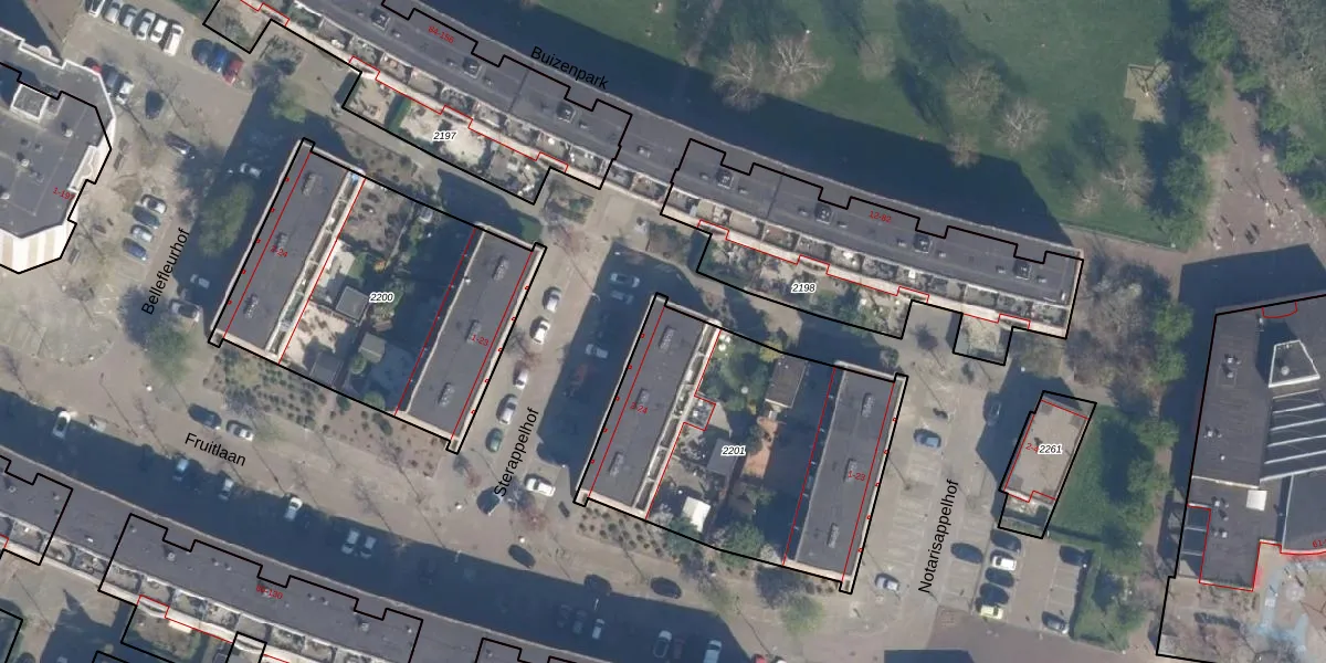 Het perceel waarop Sterappelhof 6 staat heeft een oppervlakte van 1322 m². Dit is een zeer groot perceel. De perceeloppervlakte wordt geregistreerd door het Kadaster. Gedetailleerde informatie over de maten van dit perceel kunt u vinden in het rapport Kadastrale kaart met maatvoering van Sterappelhof 6.