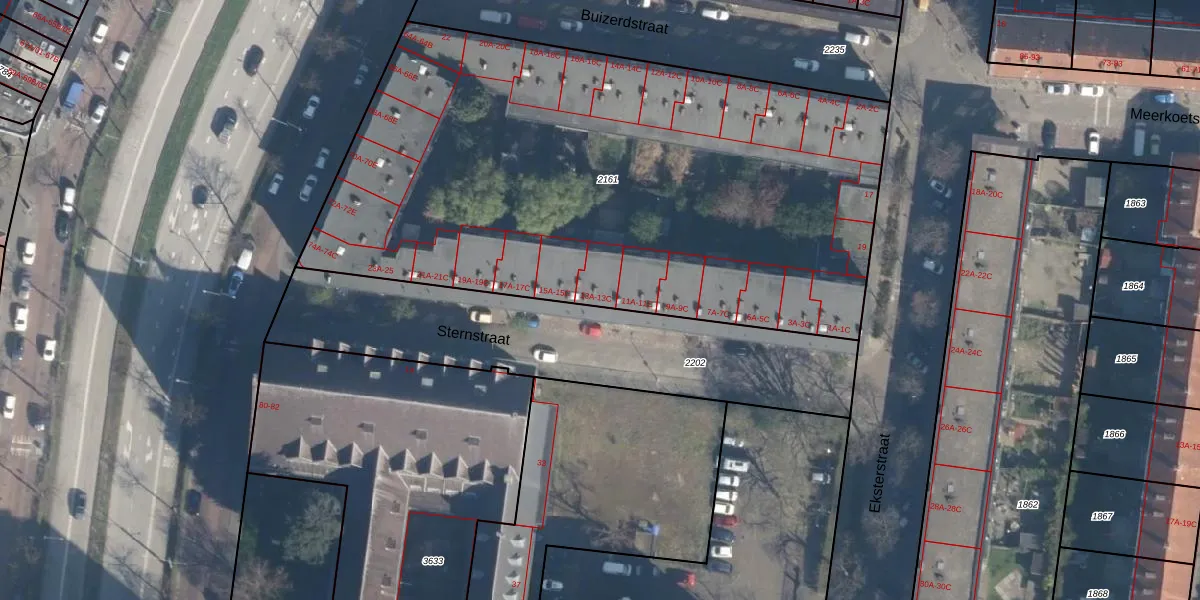 Sternstraat 13-C is gelegen op kadastraal perceel CLS00H2161. Deze kadastrale aanduiding is uniek en wordt gebruikt door het Kadaster om eigendomsrechten en andere zakelijke rechten vast te leggen. Het perceel maakt onderdeel uit van de kadastrale gemeente Charlois.