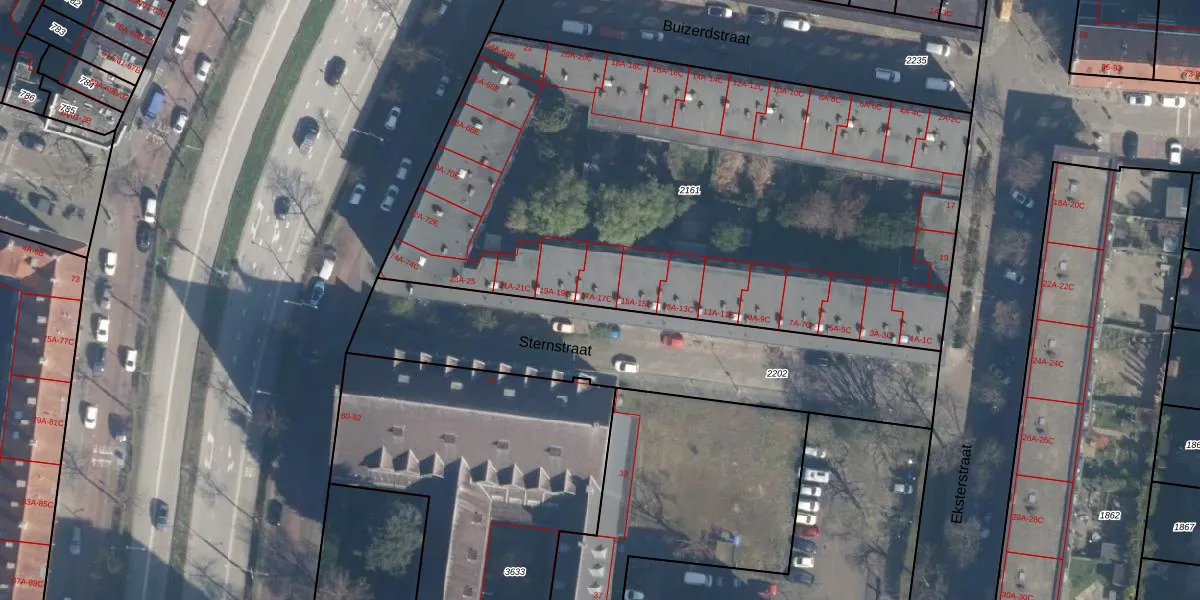 Sternstraat 17-A is gelegen op kadastraal perceel CLS00H2161. Deze kadastrale aanduiding is uniek en wordt gebruikt door het Kadaster om eigendomsrechten en andere zakelijke rechten vast te leggen. Het perceel maakt onderdeel uit van de kadastrale gemeente Charlois.
