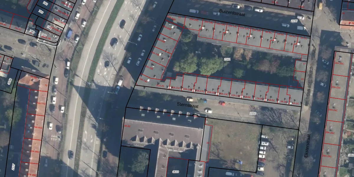 Sternstraat 21-C is gelegen op kadastraal perceel CLS00H2161. Deze kadastrale aanduiding is uniek en wordt gebruikt door het Kadaster om eigendomsrechten en andere zakelijke rechten vast te leggen. Het perceel maakt onderdeel uit van de kadastrale gemeente Charlois.