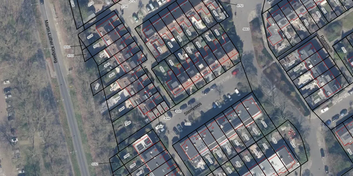 Gebruik de zoekbalk of klik op een perceel voor informatie over de adressen binnen dit perceel.
