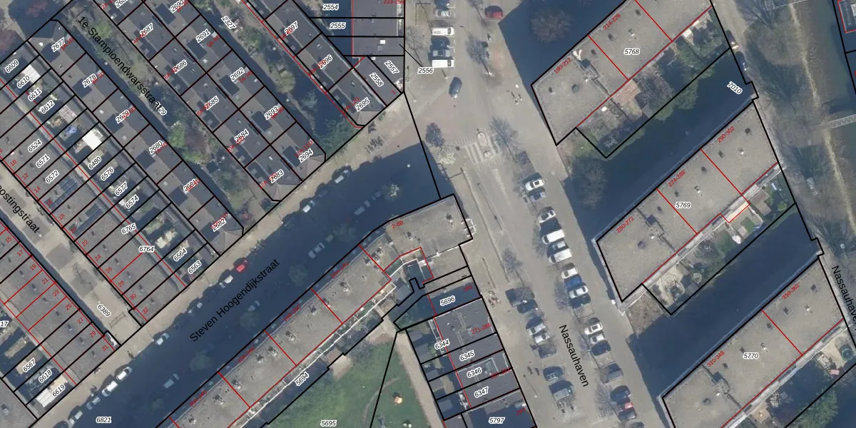 Het perceel waarop het adres ligt is RTD05-Q-5694. De afkorting 'RTD05' staat voor kadastrale gemeente Rotterdam. De oppervlakte van het perceel is 1954 m². Dat is groter dan gemiddeld in Rotterdam, waar de gemiddelde perceeloppervlakte op 1402,06 m² ligt. Het kleinste perceel in de kadastrale gemeente is 0 m² groot. De grootste perceeloppervlakte is 36,8 ha. Op het perceel zijn 58 adressen aanwezig. In de Basisregistratie Kadaster (BRK) werden de grenzen van het perceel geregistreerd op 29-01-2003.