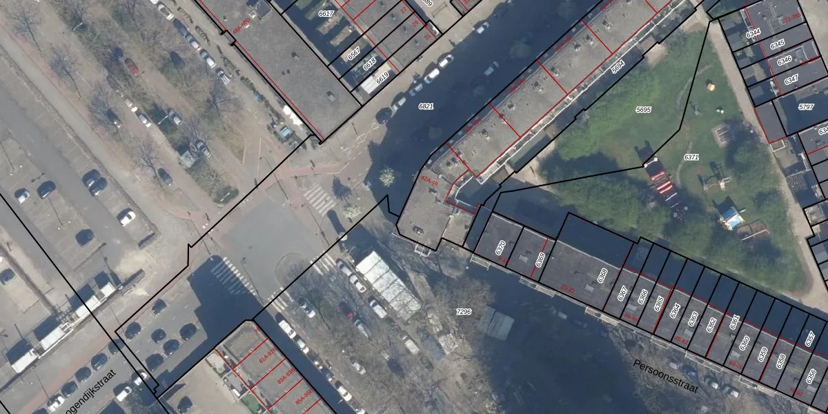 Het perceel waarop het adres ligt is RTD05-Q-5694. De afkorting 'RTD05' staat voor kadastrale gemeente Rotterdam. De oppervlakte van het perceel is 1954 m². Dat is groter dan gemiddeld in Rotterdam, waar de gemiddelde perceeloppervlakte op 1401,79 m² ligt. De grootste perceeloppervlakte in de kadastrale gemeente is 36,8 ha. De kleinste oppervlakte bedraagt 0 m². Er zijn 58 adressen aanwezig op het perceel. De laatste wijziging in het de Basisregistratie Kadaster (BRK) was op 29-01-2003.