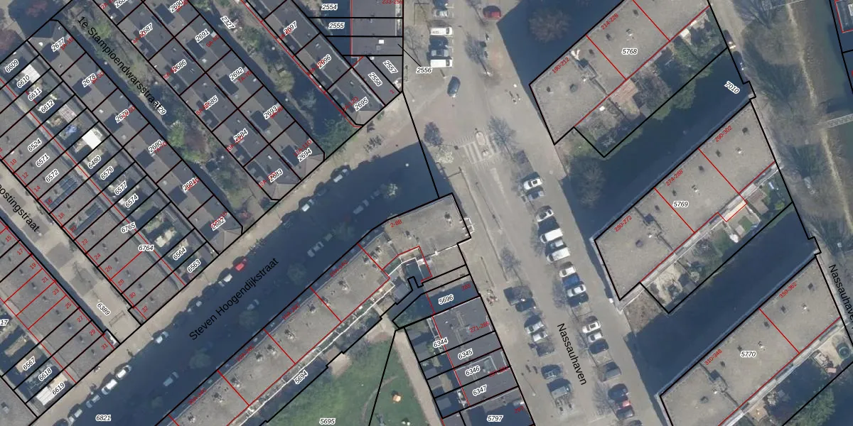 Het perceel waarop het adres ligt is RTD05-Q-5694. De afkorting 'RTD05' staat voor kadastrale gemeente Rotterdam. De oppervlakte van het perceel is 1954 m². Dat is groter dan gemiddeld in Rotterdam, waar de gemiddelde perceeloppervlakte op 1401,79 m² ligt. Het kleinste perceel in de kadastrale gemeente is 0 m² groot. De grootste perceeloppervlakte is 36,8 ha. Op het perceel zijn 58 adressen aanwezig. De laatste wijziging in het de Basisregistratie Kadaster (BRK) was op 29-01-2003.
