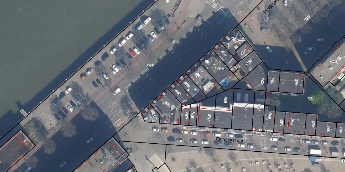 Het perceel waarop het adres ligt is RTD05-Q-1415. De afkorting 'RTD05' staat voor kadastrale gemeente Rotterdam. De gemiddelde perceelgrootte in Rotterdam is 1401,79 m². Dit perceel is kleiner: de perceeloppervlakte bedraagt 104 m². Het kleinste perceel in de kadastrale gemeente is 0 m² groot. De grootste perceeloppervlakte is 36,8 ha. Op het perceel liggen in totaal 3 adressen. De laatste wijziging in het de Basisregistratie Kadaster (BRK) was op 20-10-2006.