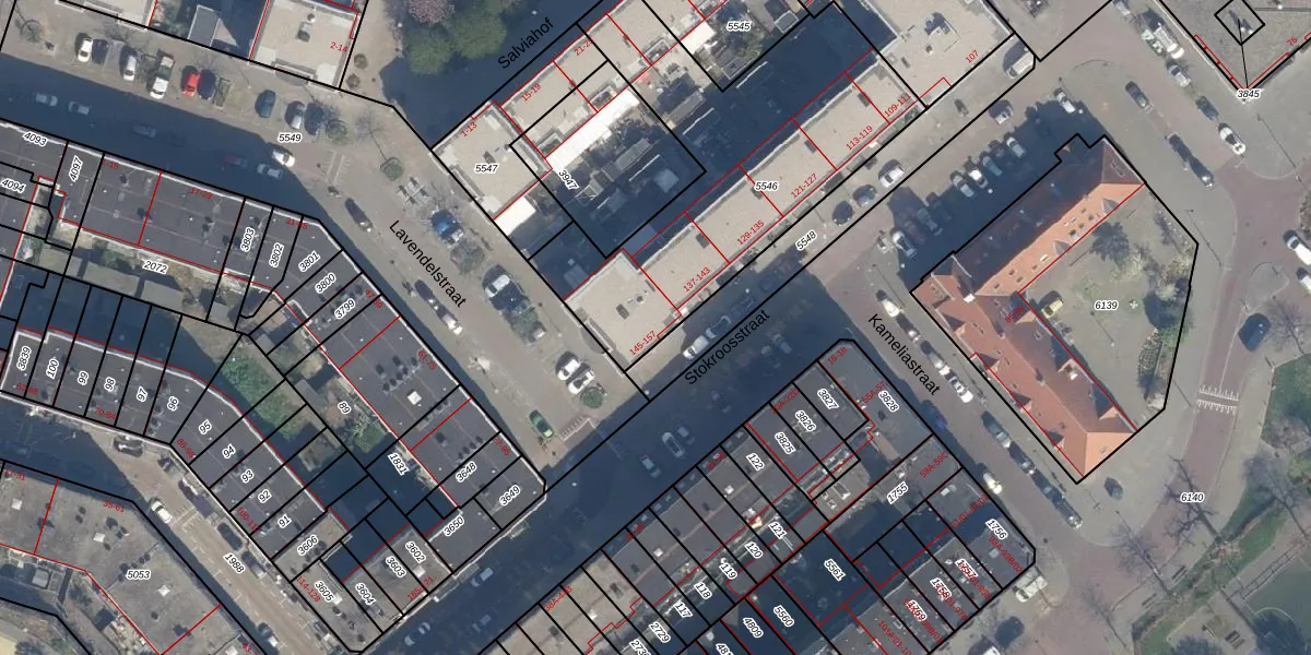 Stokroosstraat 147 is gelegen op kadastraal perceel CLS00G5546. Deze kadastrale aanduiding is uniek en wordt gebruikt door het Kadaster om eigendomsrechten en andere zakelijke rechten vast te leggen. Het perceel maakt onderdeel uit van de kadastrale gemeente Charlois.