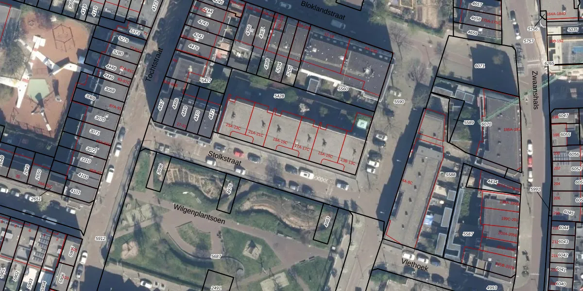 Stolkstraat 19-A is gelegen op kadastraal perceel RTD07W5428. Deze kadastrale aanduiding is uniek en wordt gebruikt door het Kadaster om eigendomsrechten en andere zakelijke rechten vast te leggen. Het perceel maakt onderdeel uit van de kadastrale gemeente Rotterdam.