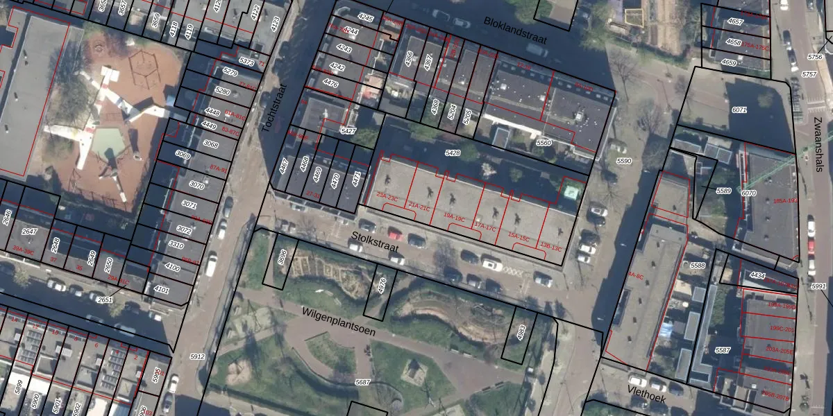 Stolkstraat 21-A is gelegen op kadastraal perceel RTD07W5428. Deze kadastrale aanduiding is uniek en wordt gebruikt door het Kadaster om eigendomsrechten en andere zakelijke rechten vast te leggen. Het perceel maakt onderdeel uit van de kadastrale gemeente Rotterdam.