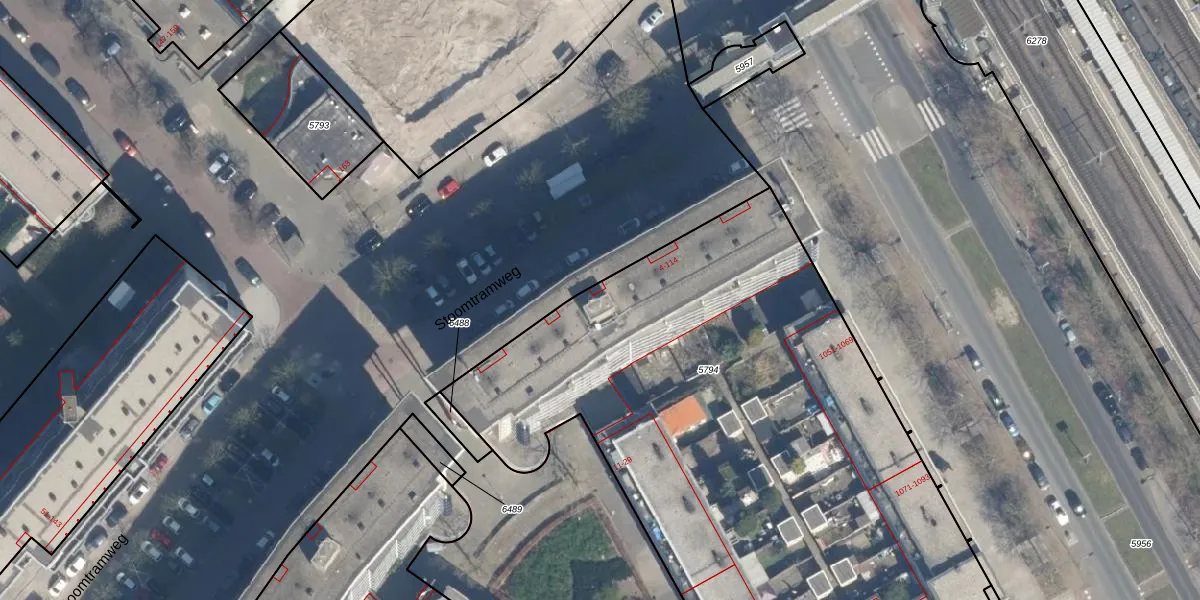 Stoomtramweg 12 is gelegen op kadastraal perceel RTD05Q5794. Deze kadastrale aanduiding is uniek en wordt gebruikt door het Kadaster om eigendomsrechten en andere zakelijke rechten vast te leggen. Het perceel maakt onderdeel uit van de kadastrale gemeente Rotterdam.